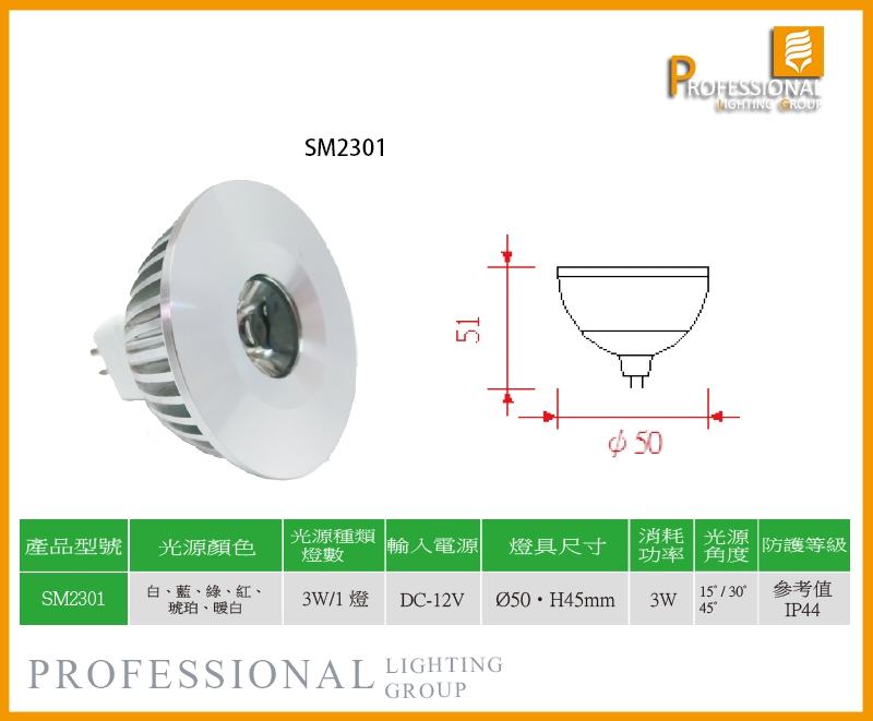 SM2301光源 MR16 鋁金屬色 鋁金屬