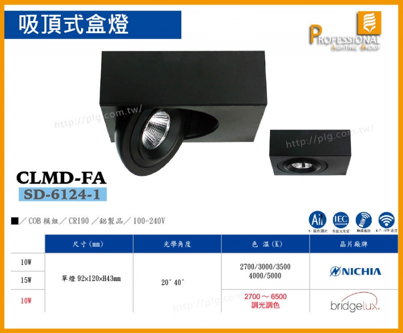 色溫: 2700、3000、3500、4000、5000 / 2700~6500調光調色