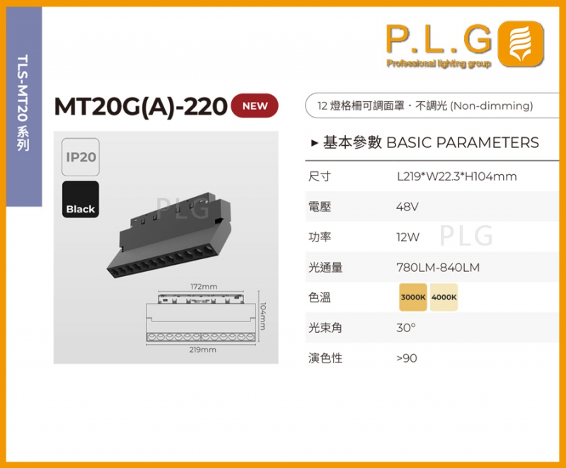 MT20G(A)-220 磁吸軌道燈(12 燈格柵可調面罩)