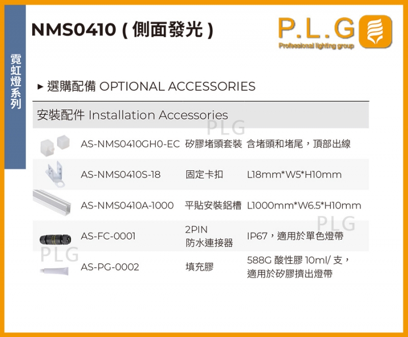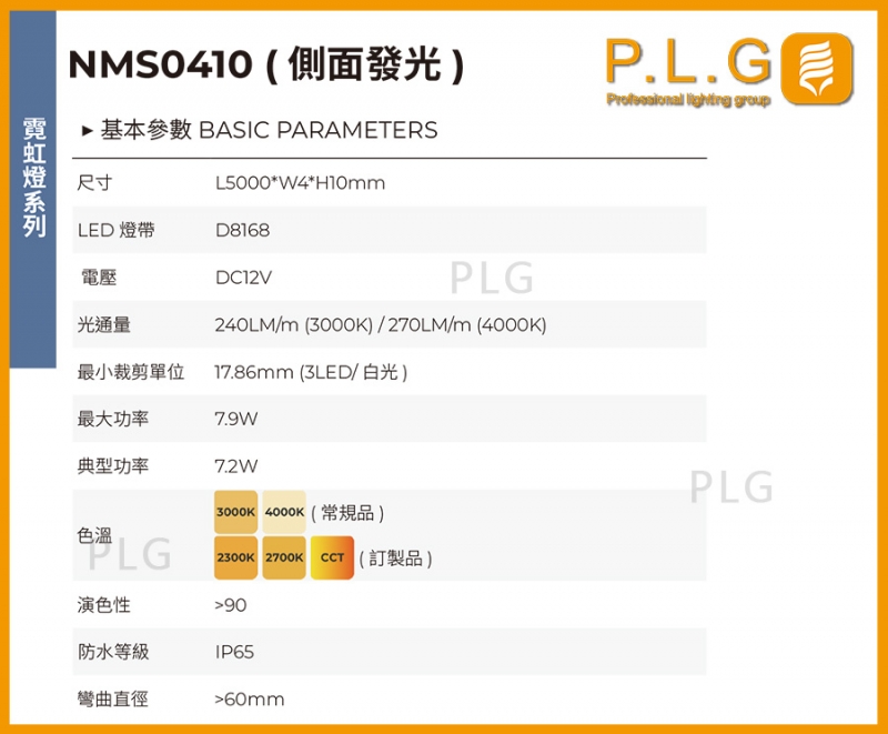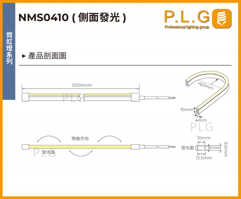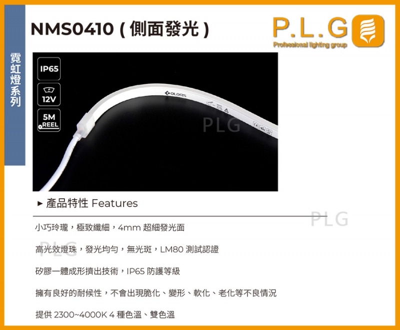 NMS0410(側面發光)霓虹燈條/矽膠燈條,IP防護65