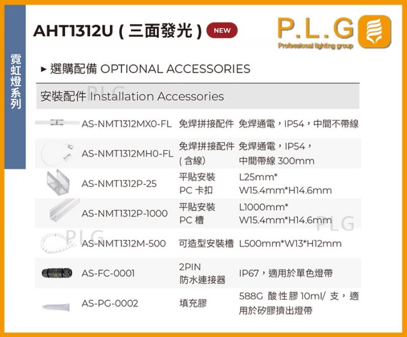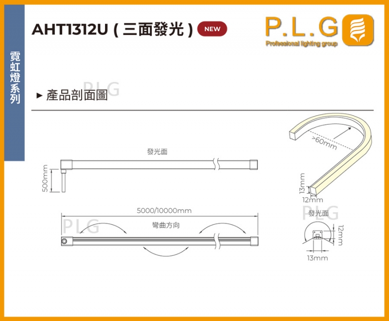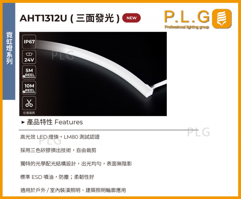 AHT1312U (三面發光) 矽膠霓虹燈條,硅膠霓虹條燈,IP防護67,任意裁剪
